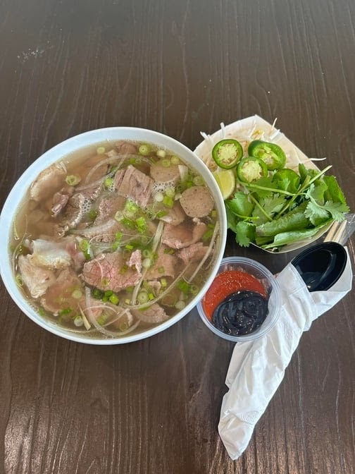 For those who love a good noodle bowl, their bun bo hue, a spicy beef noodle soup, is a must-try. It's rich in flavor and has just the right amount of kick. Each dish is made with fresh ingredients and balanced flavors, with every bite giving you a taste of authenticity. And don’t forget to try their iced coffee - it’s strong, sweet, and the perfect pick-me-up if you’re feeling tired after a busy day.